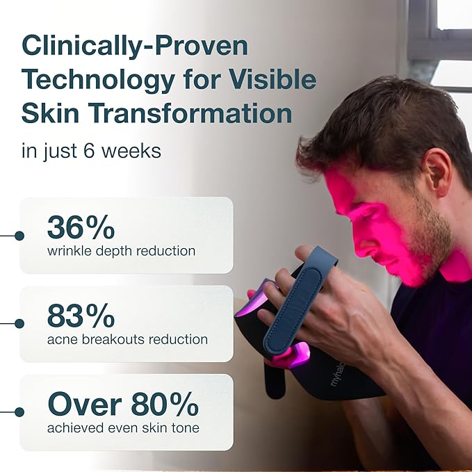 • Wavelengths for Visible Results - Designed with red (633 nm), near-infrared (830 nm), and blue light (460 nm) wavelengths, this skin tightening light therapy device helps improve skin elasticity and may help reduce breakouts by 83%. Studies also show 36% wrinkle depth improvement.