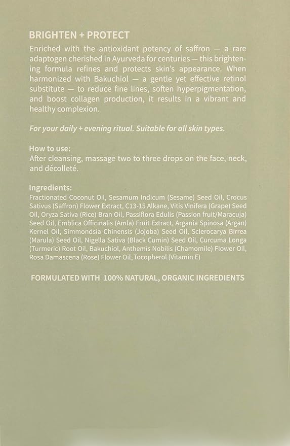 • RADIANT GLOW : Saffron is known for its brightening abilities, helping to reduce dullness and revitalize tired-looking skin. This skincare serum promotes an even skin tone and enhances your natural luminosity, ensuring that your complexion appears vibrant and refreshed. It’s perfect for those seeking a youthful, radiant glow in their skincare routine.