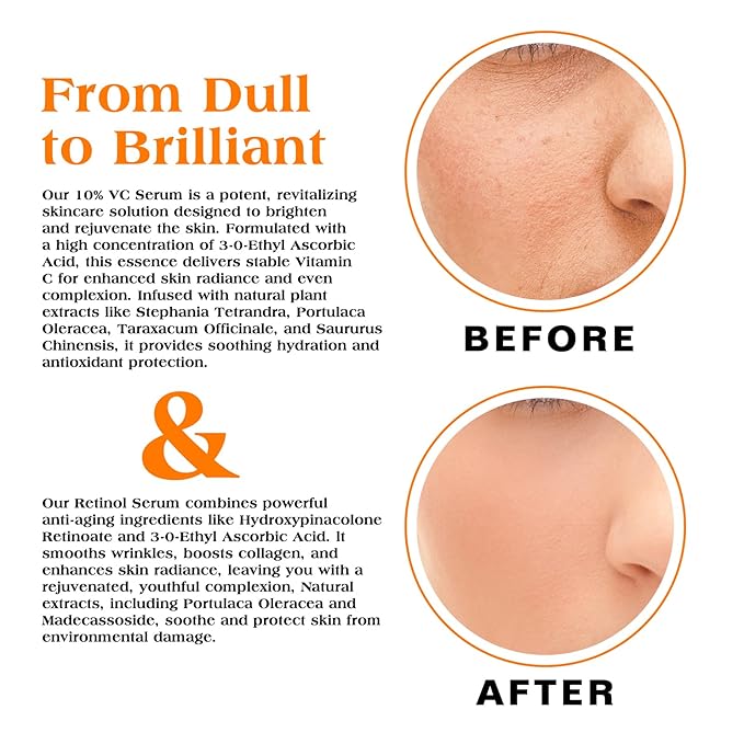 Face Serum Duo – Retinol Serum for Face & Vitamin C Serum – Anti Aging Skin Care Set for Women – Skin Care for Bright, Anti Wrinkle, Smooth, & Firm Skin – 1 fl oz, 2 Bottles
