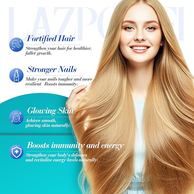 Hair Skin and Nails Vitamins, Biotin with Bovine Colostrum, Collagen & Vitamin A, B6, C, D, E, Supports Healthy Hair, Nails & Skin for Men and Women-076