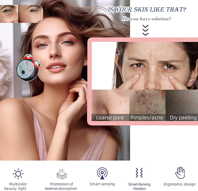 • 【Smart Vibration Microcurrent】Blue light and other color light microcurrent facial massage can effectively slow down the aging. reducing wrinkles, improving sagging skin, reducing double chin, making the appearance radiant, and increasing the absorption of facial skincare products
