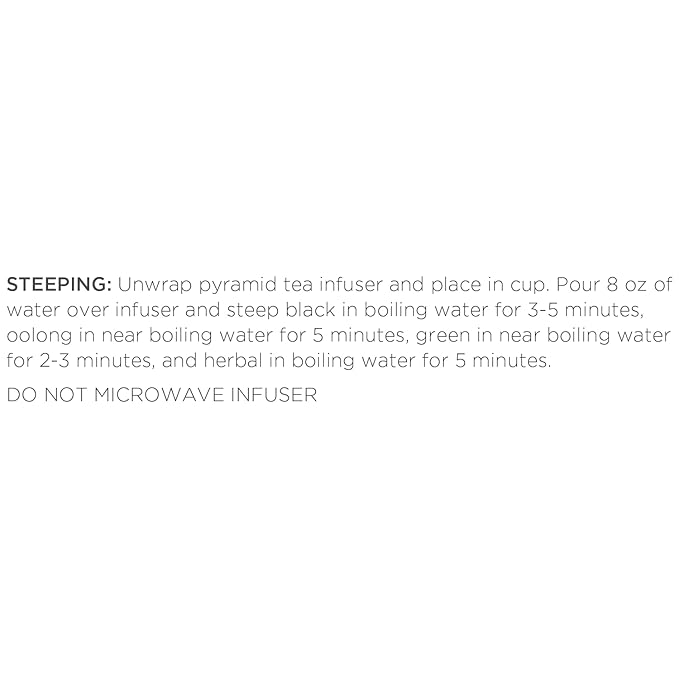 • HOW TO STEEP - Unwrap the Pyramid Infuser, steep in hot water, and reveal the exquisite nature of the whole leaf teas. Allows the tea leaves to fully unfurl in the water, resulting in a most flavorful cup of tea. Do not microwave pyramid infuser.