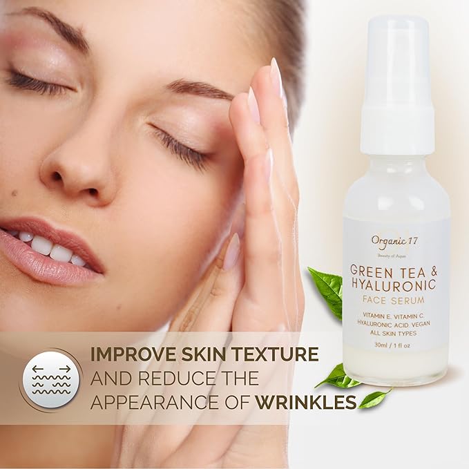 Hyaluronic Acid & Green Tea Face Serum – Anti-Aging Hydrating Serum with Vitamins C + E for Glowing Skin, Vegan & Cruelty-Free for All Skin Types – 30ml
