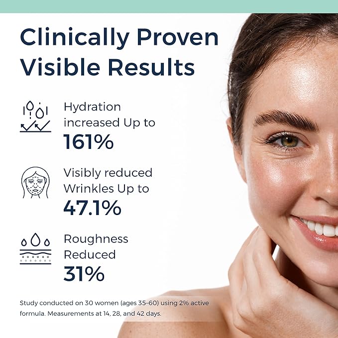 • SAFE FOR ALL SKIN TYPES, CLINICALLY PROVEN RESULTS: This non-comedogenic serum delivers clinically proven results for all skin types, including sensitive skin. It provides hydration, reduces wrinkles, and improves skin texture, ensuring a gentle, non-irritating formula for a smooth, radiant complexion.