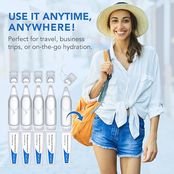 3% Hyaluronic Acid Serum for face, Hyaluronic Acid Tubes, Ultra-Hydrating Vials Serum Smoother Skin, Hyaluronic Acid Boosting Serum Single-Use Skincare 1.2ML*30