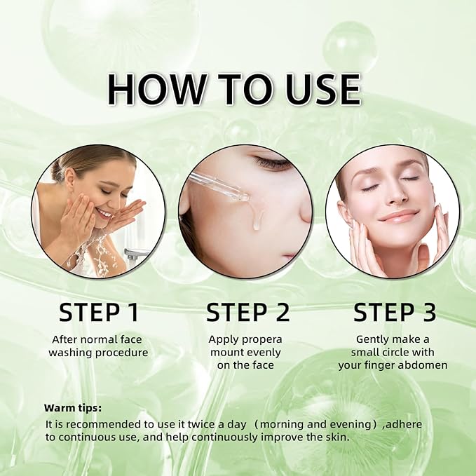 • 【Usage】:First, simply clean your face with water, then take an appropriate amount of serum and apply it evenly on your face, gently massage it until it is completely absorbed