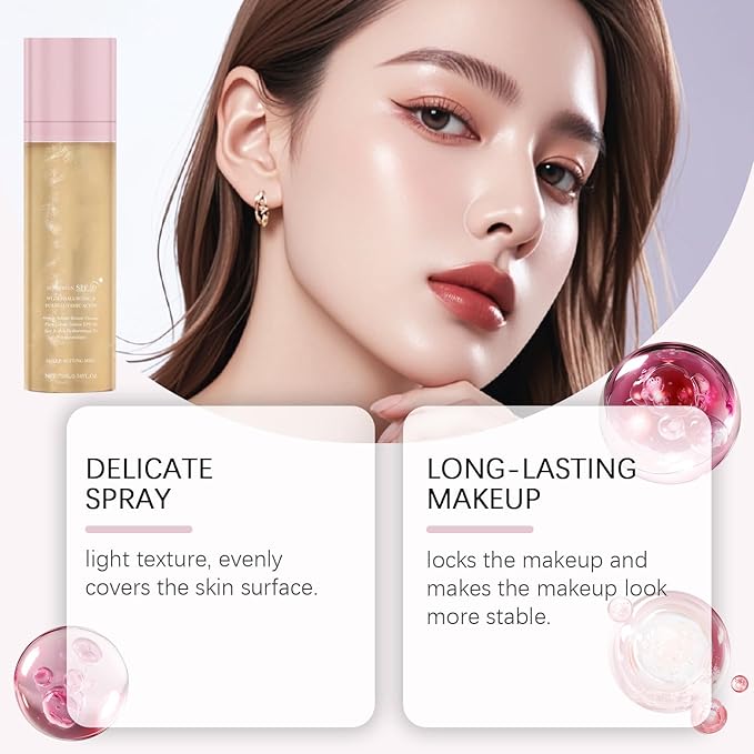 • 【Hydrated, Glowing Skin】 - The hyaluronic acid in this Sheer Setting Mist Sunscreen can deeply hydrate and lock in moisture, providing long-lasting moisturizing without being greasy, leaving the skin plump and healthy.