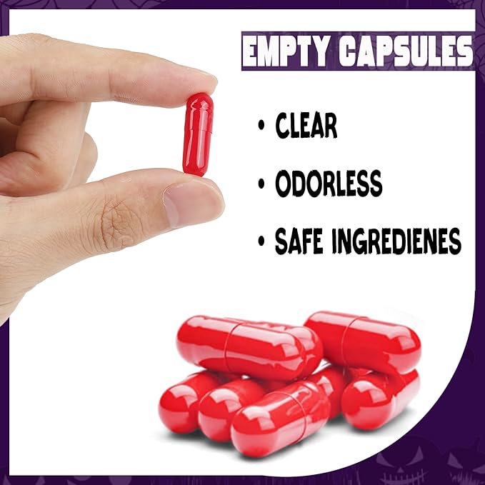 • Easy to Fill Empty Capsules: Fill the empty capsules with fake blood to achieve two unique effects. Bite down for an explosive burst of blood, or let the capsule dissolve in your mouth for a slow, creepy bleeding effect.