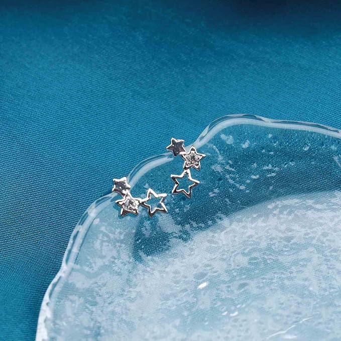 • Silver cz star climbers earrings keep color and sturdy,simple yet classic.Own your timeless notion of beauty.