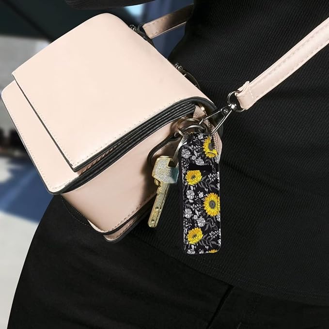 Bulopur Black Yellow Sunflower Chapstick Keychain Holder Lip
