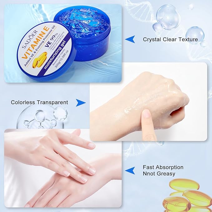 • 【Evening Primrose Moisturising Gel】This gel is a powerful moisturising gel that contains Vitamin E, Salicylic Acid and Hyaluronic Acid, amongst other natural ingredients that help to improve the appearance of dry, rough skin, leaving the skin fine, smooth, soft, supple and supple.