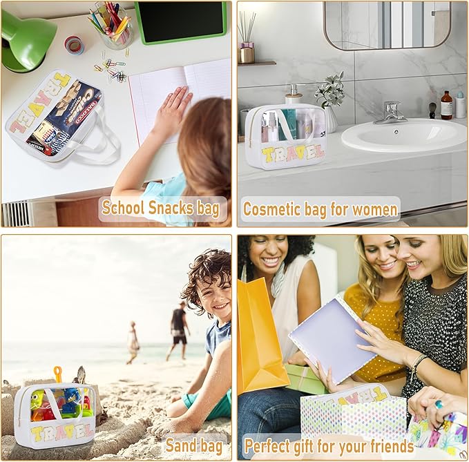 • 【Chenille Letters】WELIDAY chenille letter TRAVEL pouch feature professionally sewn chenille lettering patches so you don't have to worry about them coming off. The colorful letters are made of towel embroidery and non-woven fabrics, with a bright sparkling border that matches the brightly colored nylon bags for an eye-catching finish