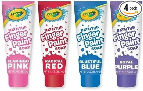 • Crayola Bathtub Fingerpaint 4 Color Variety Pack, 3 Ounce Tubes (Radical Red, Flamingo Pink, Bluetiful Blue and Royal Purple)