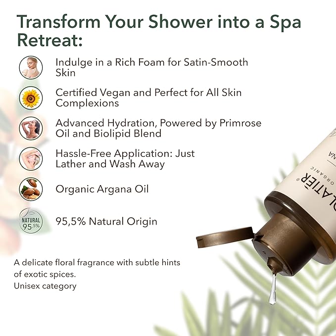 • Superior Skin Care Experience: Ecolatier Organic Argana Shower Oil is not just a body wash; it's a holistic body skin care product. Transform your daily routine into a luxurious, moisturizing journey with in shower body oil, ideal for a superior shower oil body wash.