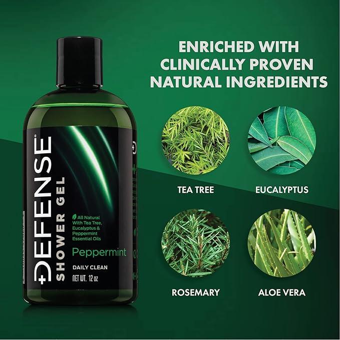 • CLINICALLY PROVEN NATURAL TEA TREE OIL, PEPPERMINT OIL, AND EUCALYPTUS OIL provide a broad spectrum of benefits effective against many common skin irritants. Together they help prevent against a variety of conditions including Dandruff, Body Odor and Acne.