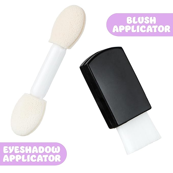 • Glitter & Glisten - This novelty makeup kit for kids and teens includes 7 eyeshadow shades, 3 blush shades, and 2 makeup brushes : 1 eyeshadow applicator, and 1 blush brush