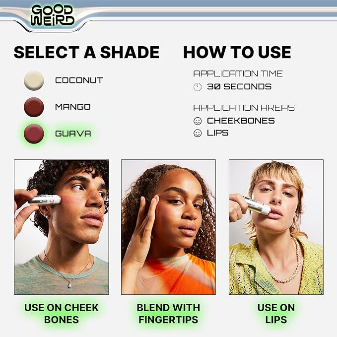 • Universal Hydration and Glow: Good Weird’s Balmy Weather Moisture Stick in Guava brings a soft, romantic luminosity to every face and lip, enhancing your natural beauty.