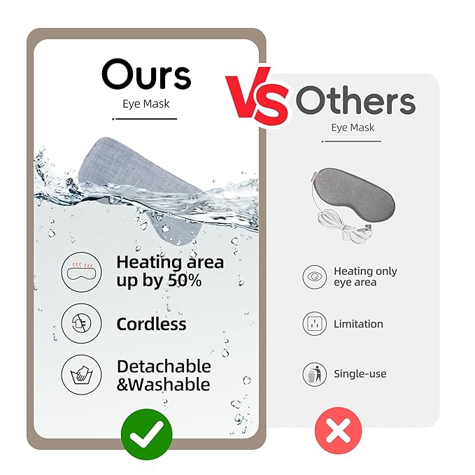 • Therapeutic Heated Eye Mask: Experience unparalleled relaxation and improved sleep with our warming eye mask. Enjoy the gentle warmth surrounding your eyes, fostering a serene environment ideal for relaxation