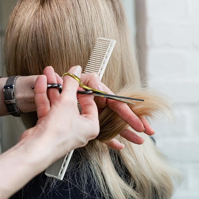 • Premium Material: Our hair scissors are made of 100% Japanese stainless steel with extremely sharp blades for clean cut, suitable for dry and wet hair. The hair cutting scissors covered with beautiful black and gold coating, anti-rust, more durable, can provide service for many years