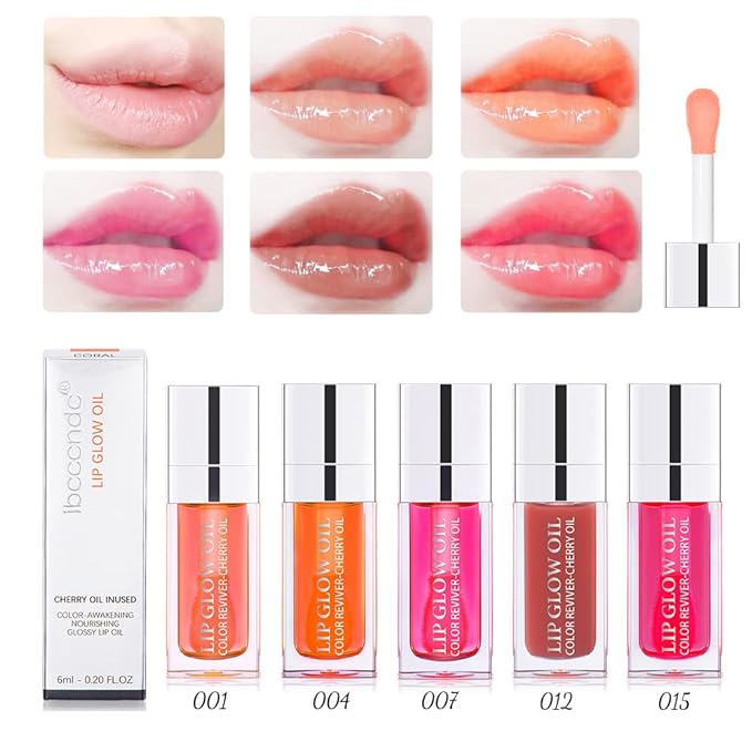 Hydrating Lip Glow Oil, Moisturizing Lip Gloss, Plumping Lip Oil, Non-Sticky Long Lasting Lip Oil Gloss, Transparent Lip Oil Tinted, Reduce lip lines (Pink(#001))