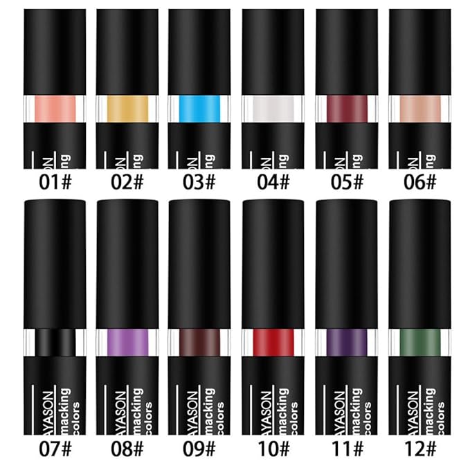 Kaely 1Pcs Green Face Paint Stick,Pro Eye Black Stick Baseball Football Softball,Easy to Color,Matte Lipstick Face Body Paint Set,Halloween Birthday Party Clown Makeup Sets,12