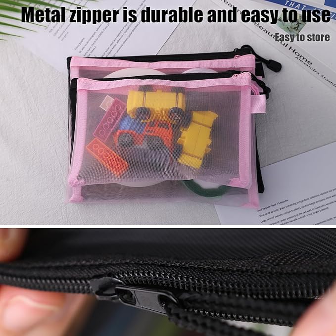 • Durable yet Flexible Nylon Mesh - Our cosmetic zipper bags feature sturdy nylon mesh material that strikes a balance between durability and flexibility. While the bag holds its shape well, in pink and black.