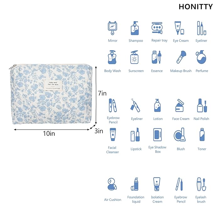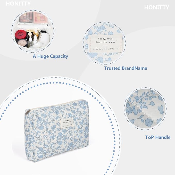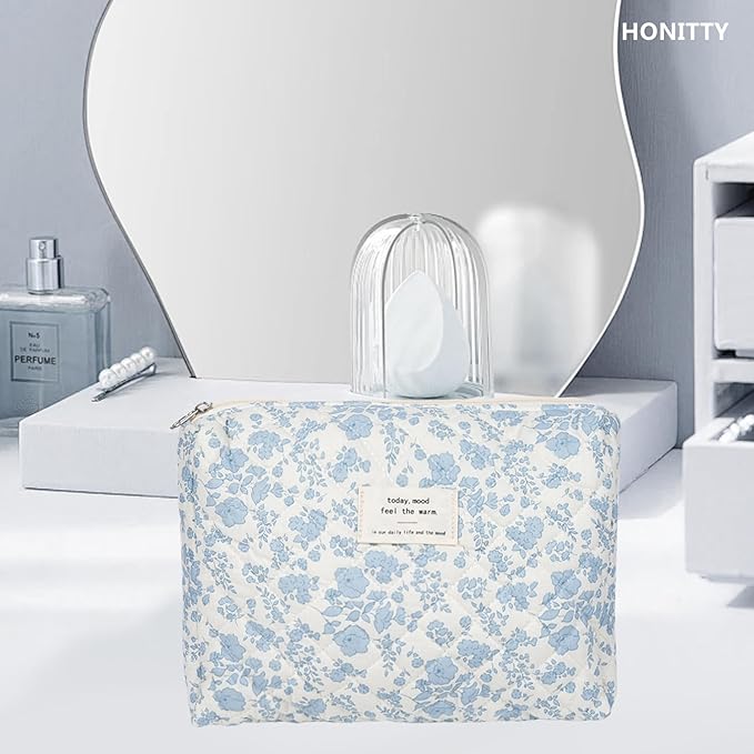 • 【VARIOUS SCENARIOS】The cotton quilted makeup bag Store your skincare products, toiletries, makeup brushes, electronics or office and school supplies. Perfect as a gift for your friends, family. It is a good choice for daily life and travelling storage.