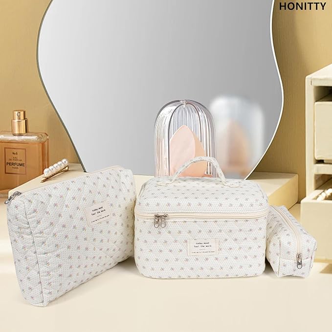 • 【VARIOUS SCENARIOS】The cotton quilted makeup bag Store your skincare products, toiletries, makeup brushes, electronics or office and school supplies. Perfect as a gift for your friends, family. It is a good choice for daily life and travelling storage.