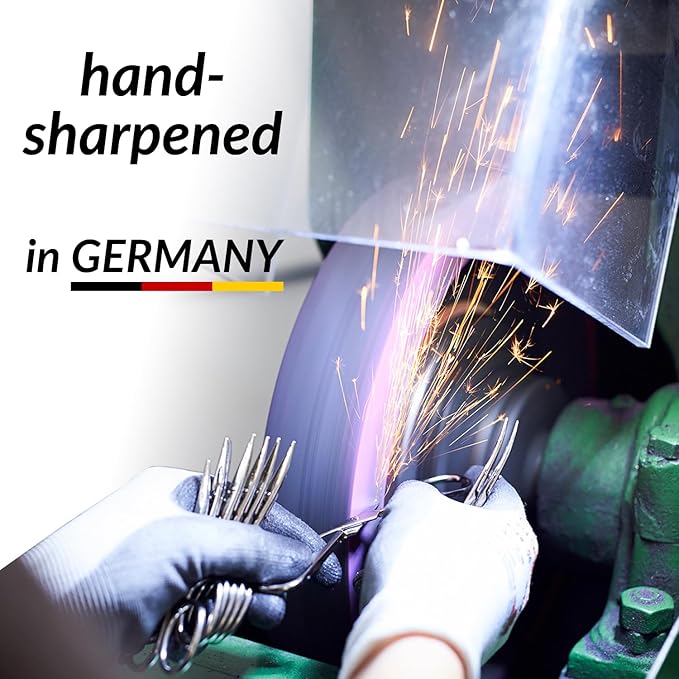 • ➕ MADE IN GERMANY: Our scissors are German quality products. hand-ground, cut-tested and resharpenable. You can readjust the scissors at any time using the screw.