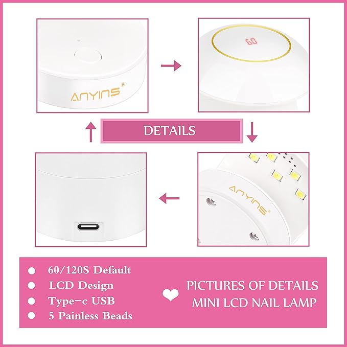 • 180°Opening Design: ANYINS mini uv nail light has a large opening of 180°, you can flexibly insert your nails from different directions. You do not need to worry that your nails are too long and the nail lamp is too small to completely dry out the gel.