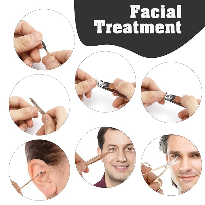 • Manicure Set:Manicure Kit Contains nail and toenail tools,Multifunctional includes hand care, facial care,and foot care tools.Manicure Kit contains 7 tools for hand care, facial care, and foot care which can meet all of your needs.No need to pay for a single nail clipper or Nose Hair Scissors, money can be saved. Even thick nails can be easily cut off directly, No need to use a lot of force.