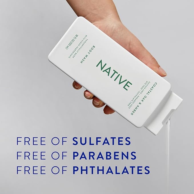 • Clean Ingredients - Native body wash contains naturally derived ingredients. We also use both safe, synthetic, sustainable fragrances (free of phthalates) and natural fragrances.