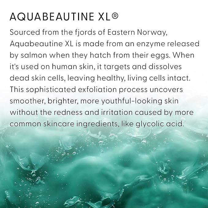 • PROVIDES ADVANCED EXFOLIATION WITH AQUABEAUTINE XL - Aquabeautine XL is a patented, ethically-sourced enzymatic compound collected from the waters where salmon fry hatch from their eggs. It removes dead skin cells while keeping healthy, living cells intact — a process that supports a smooth, bright, and renewed-looking complexion without the irritation of traditional exfoliation.