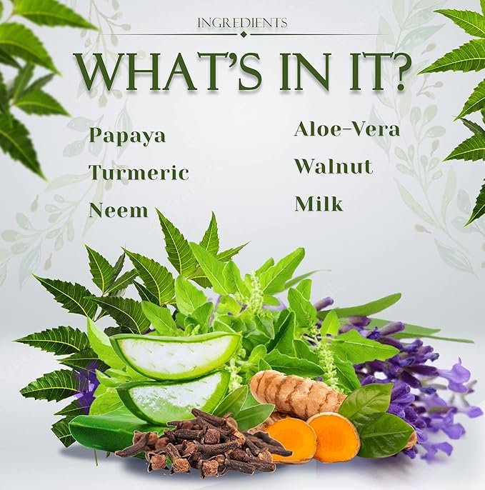 • Neem and Aloevera Face Wash (65ml) This is a mild face wash that helps treats acne & keeps the skin oil free. Known for its Anti- Inflammatory properties Neem & Aloevera combined clears your skin of impurities and keeps it hydrated.