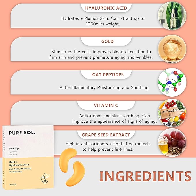 • ★ STAYS IN PLACE: You are busy and that is why we formulated Pure Sol collagen under eye gel patches to not slip. Leave eye gel pads in the fridge for an extra cooling and depuffing. Keep a couple eye masks in your bag for when you need a pick me up on the airplane or car ride.