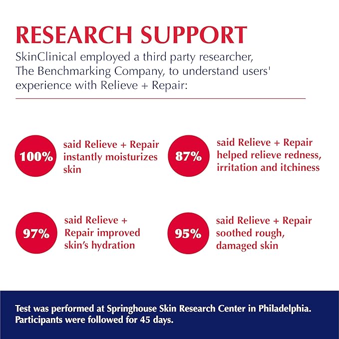 • Intensive Hydration: SkinClinical Relieve and Repair lotion for sensitive skin helps deeply hydrate dry and dehydrated skin and may help relieve cracking, chafing, and roughness.* Unscented lotion, for sensitive skin.