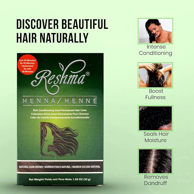 • WHY HENNA?: Derived from the plant Lawsonia Inermis, we bring you the ancient Ayurveda beauty secret with our Reshma Beauty 30-minute Henna Hair Color. The natural leaves of the plant are carefully dried and sifted to provide rich properties that bind to your hair to support hair health. Henna is a natural conditioner that can help regulate hair oil levels, offering a much more balanced and enriched texture.