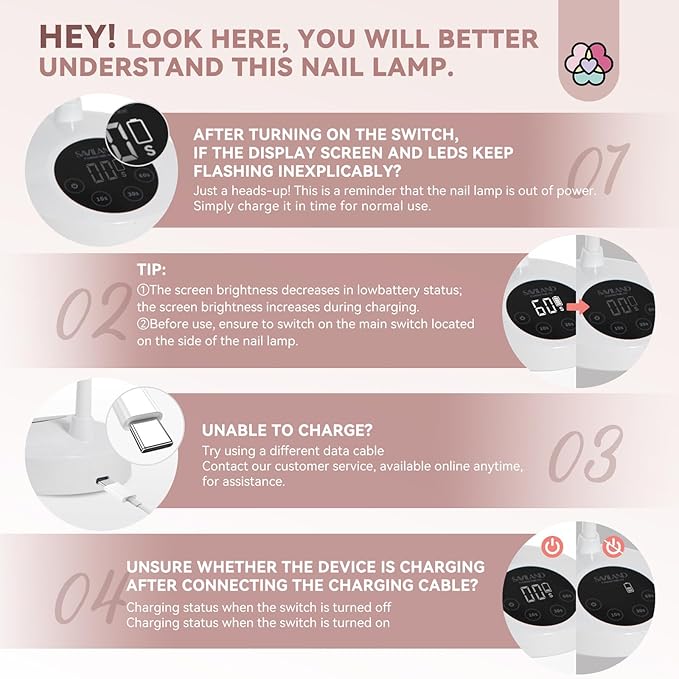 • 2024 Upgraded High Parameter Nail Lamp: Beginner and professional friendly. By collecting all feedback from our customers. This cordless nail lamp features with 3000mAh rechargeable built-in battery and 10pcs LED beads to provide a better experience from curing to using