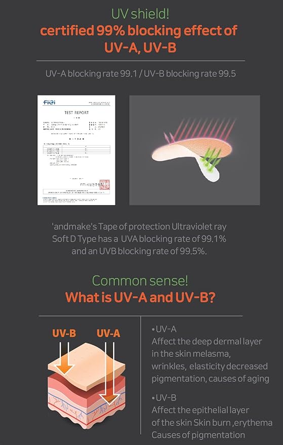• 🌈 HUMAN APPLICATION TEST : Sun protection tape soft type D is a product that was determined as non-irritating as a result of Human body appication test according to the criteria of the International Contact Dermatitis Research Group.