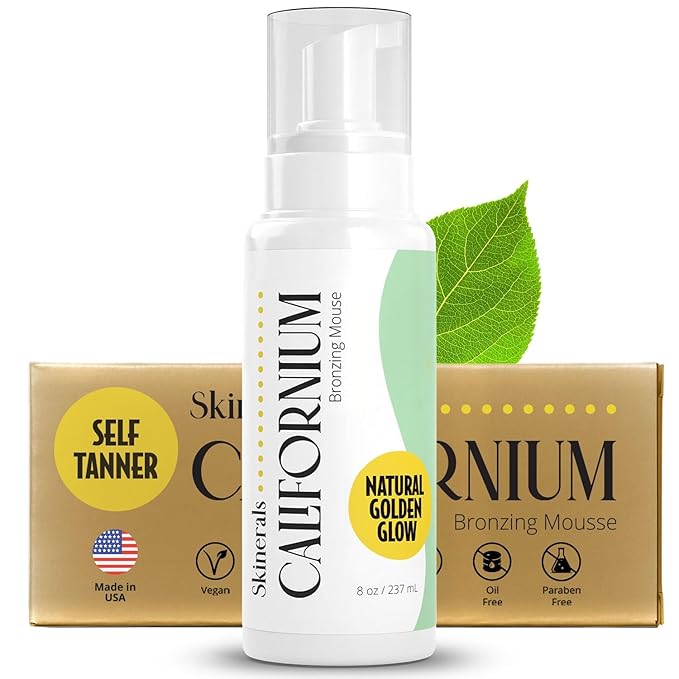 Skinerals Self Tanner Mousse - Natural Self Tan, Bronzer, (Californium) 8 Oz