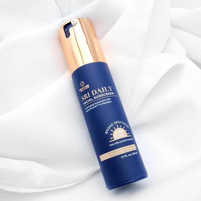 SRI Daily Facial Sunscreen - SPF 40 - Anti-Aging with Lipochroman & Peptides - Transparent Zinc Oxide - Universal tint & Weightless - 1.7 OZ