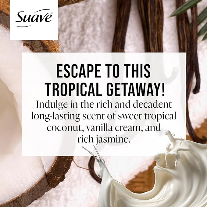 • FRAGRANT BODY CARE SET: This Suave Body Wash and Suave Antiperspirant Deodorant will delight your senses with the long-lasting sweet scents of coconut, vanilla cream, and jasmine.
