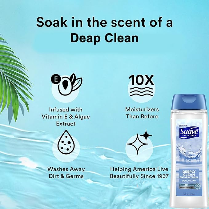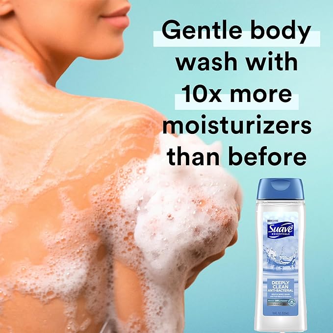 • VALUE PACK CONVENIENCE: This body wash bulk pack includes six (6) 18-fluid-ounce bottles of Suave Essentials Deeply Clean Gentle Body Wash, ensuring you stay stocked up on your favorite moisturizing body wash for longer. Perfect for families or those who like to buy in bulk.