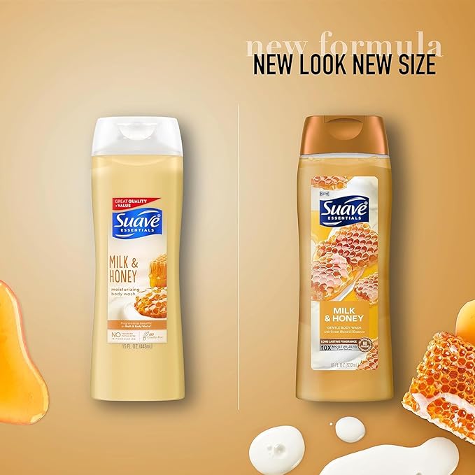 • Product 2: Allow us to reintroduce ourselves! Suave Essentials Body Washes are now new and improved, featuring a new look, long-lasting fragrances, and 10x the moisturizers than before.