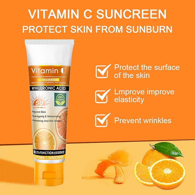 • 【ADVANCED VITAMIN C SUN CREAM】Vitamin C sunscreen moisturizer face protects the skin. Sunscreen SPF 50 help prevent premature skin aging caused by from the sun.Rich in Vitamin C and hyaluronic acid helps the skin to be highly moisturized, and the skin is smooth and nourish skin.