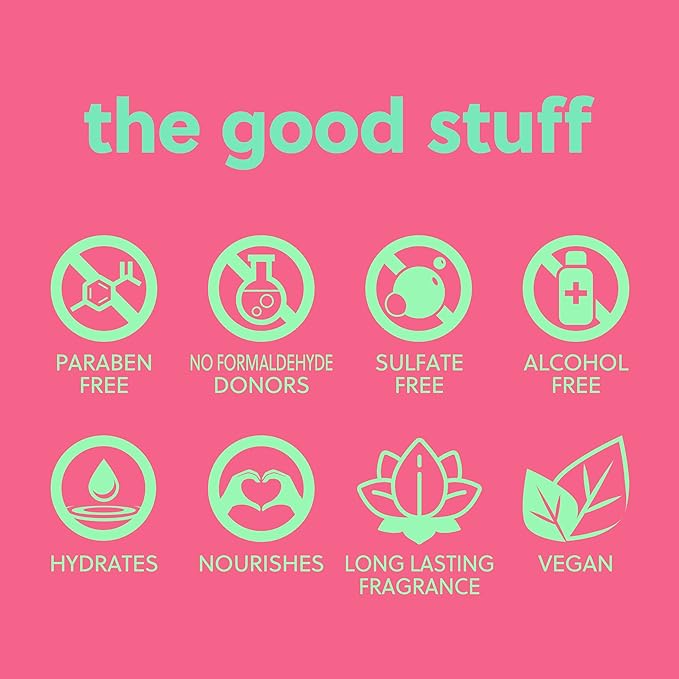 • Vegan, paraben free, sulfate free, alcohol free, no formaldehyde donors and long-lasting fragrance