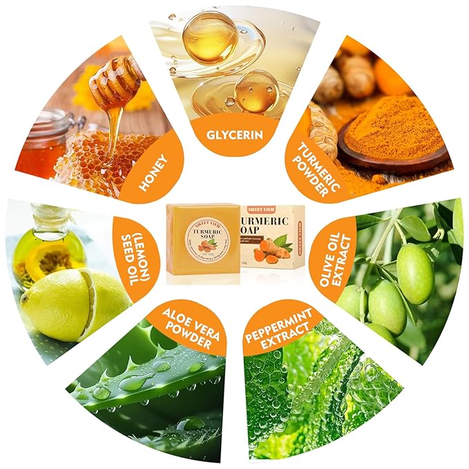 • NATURAL FORMULA - Lemon Turmeric Soap contains Aloe Vera, Honey, Peppermint Extract, Olive Oil Extract and other natural active ingredients to provide an all-natural skincare experience for sensitive skin.