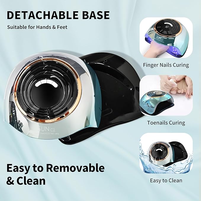 • 💅【Coloured Glaze Blue Paint& ABS Material】 ABS Material, make this gel nail lamp have long service lifetime. If the surface is accidentally stained with nail polish, just wipe it gently with a cotton cloth. Detachable base design is more convenient for toenail gel drying. Hands and feet Mode can switch at will.