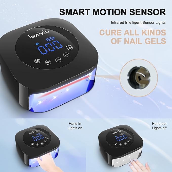 • 【Curing All Gel Nail Polishes】 This nail dryer can fast cure with all nail gel brands, e.g.Base Coat, Top Coat, Color Gel, Hard Gels, Poly Gels, Builder, Acrylic, Sculpture gel, gem glue, etc.(not for regular nail polish.) Enjoy high-quality salon manicures at home with your friends and family. If you have any problem with the Lavinda gel nail lamp, please contact us through "contact sellers", and we will offer you a satisfactory solution within 24 hours.